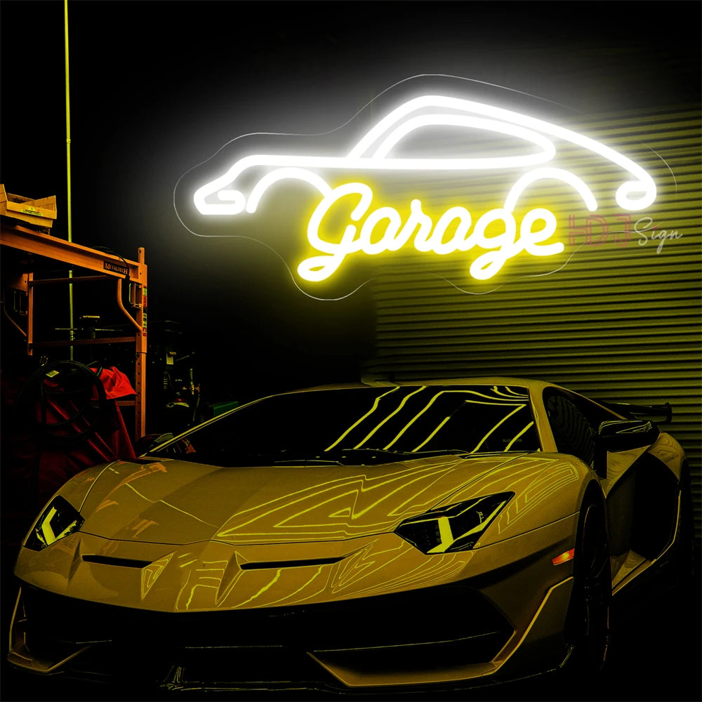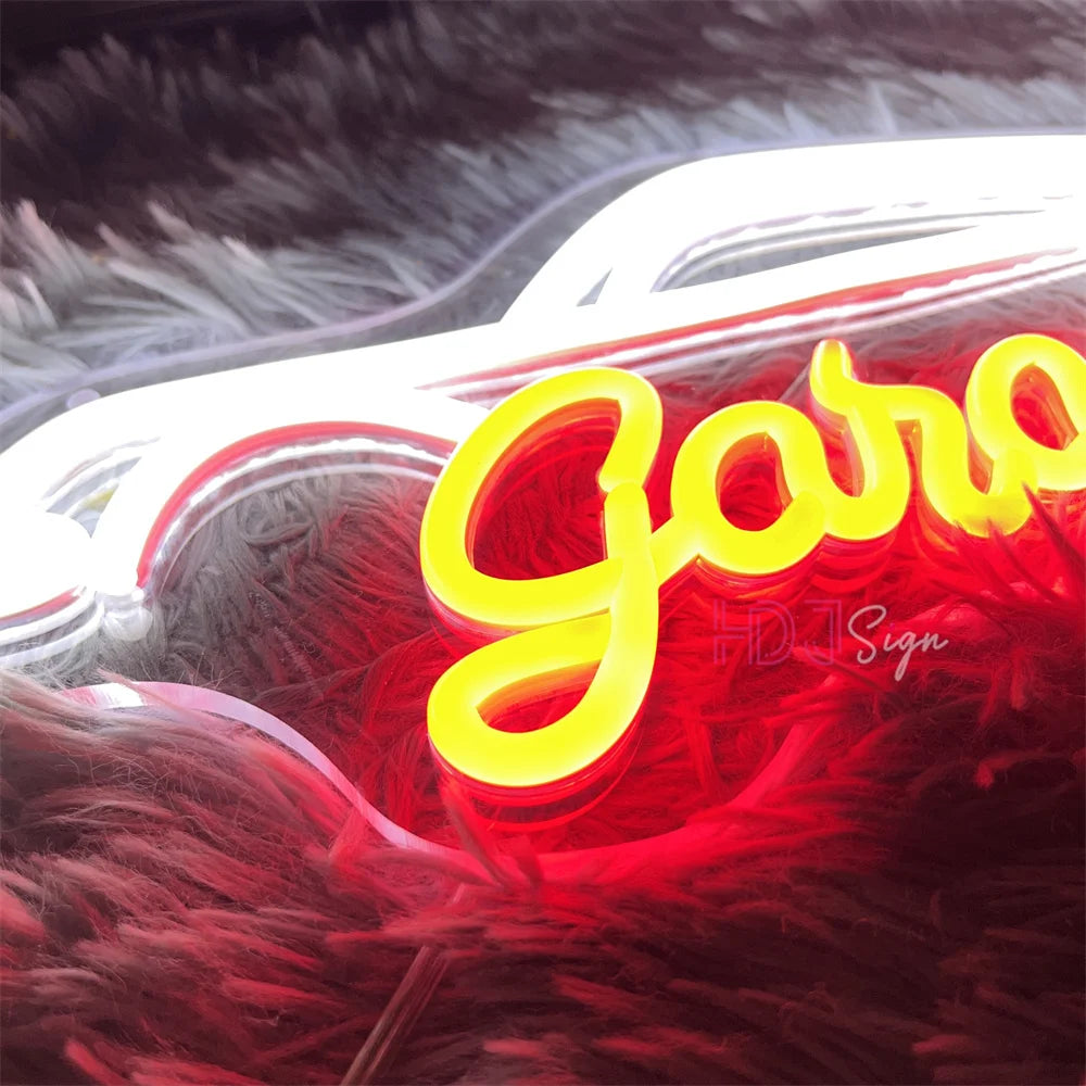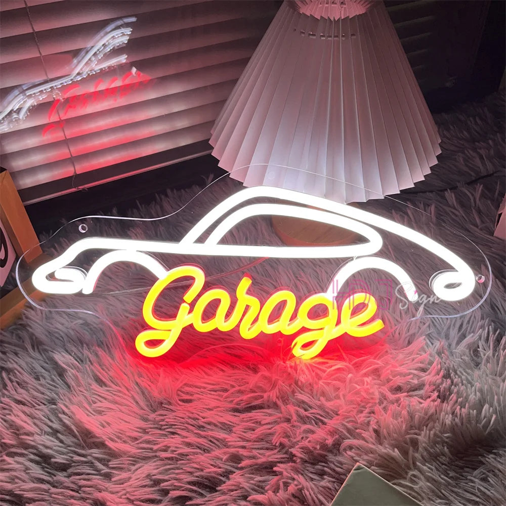 Showcase your automotive zeal with the Lustrous Auto Essence: Garage Neon Sign, designed to bring a luminous tribute to car culture into any space. This neon sign is not just a lighting element; it's a celebration of the automotive world. This display will be a dynamic addition to your decor, bringing a vibrant ambiance to any room it adorns.