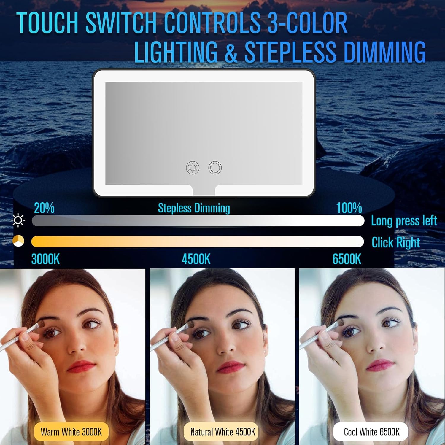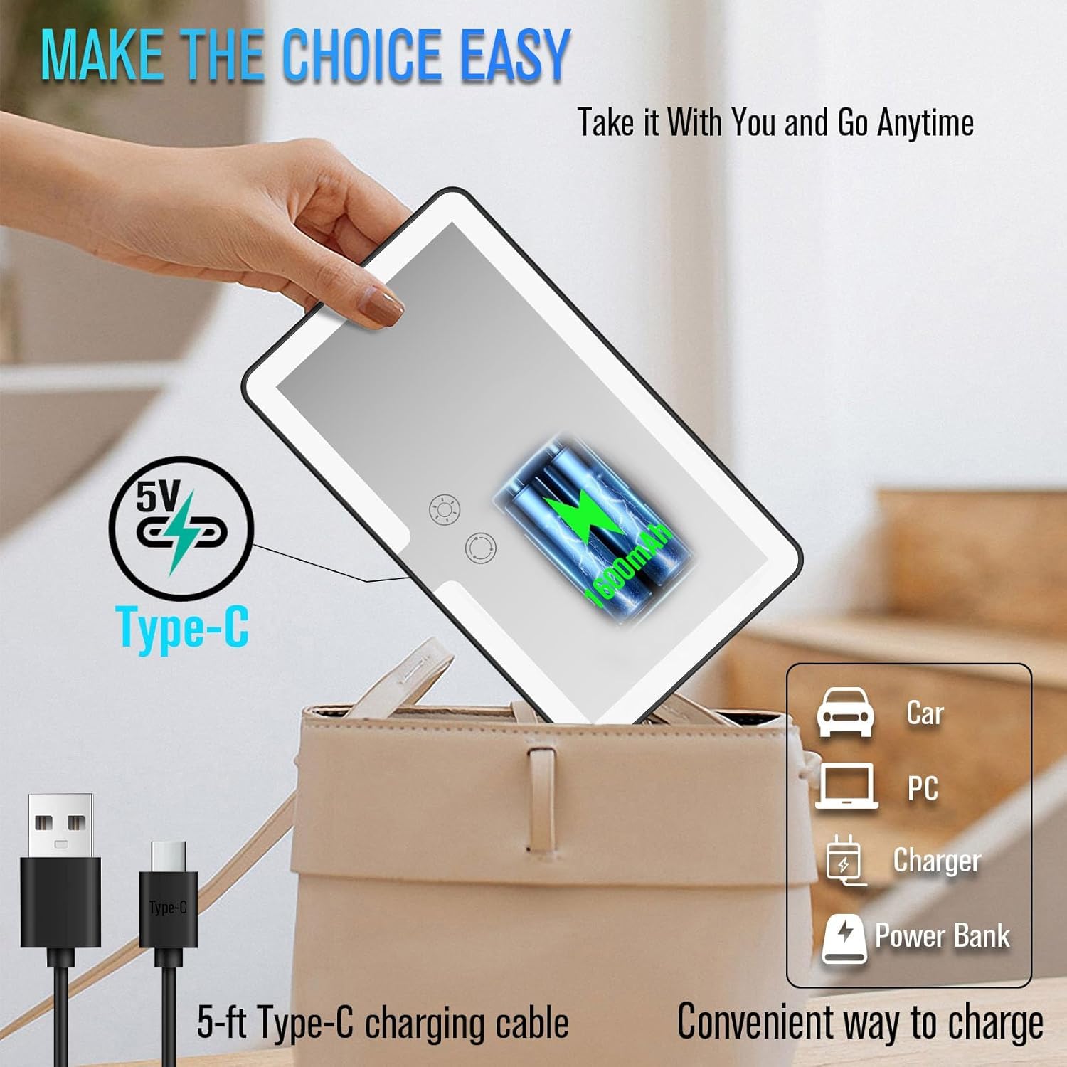 Brightness can be adjusted by holding the control sensor. The mirror remembers previous brightness and color selection through built-in memory capability. This reduces the need for repeated adjustments. The USB Charging Mirror operates through a built-in lithium battery. It allows cordless use after charging. The extended cable supports convenient power access from vehicle ports or external power sources.