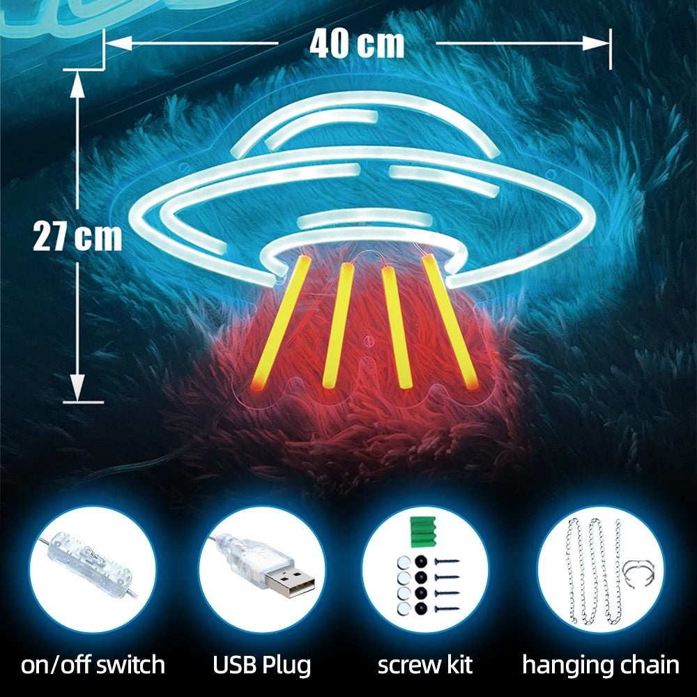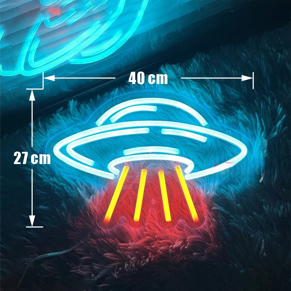 The Spaceship Neon Light Sign is perfect for adding a unique touch to your game room, bedroom, or any party setting. With its sleek and modern design, this LED light brings a fun and futuristic feel to any space. It's an excellent birthday gift for anyone fascinated by outer space.