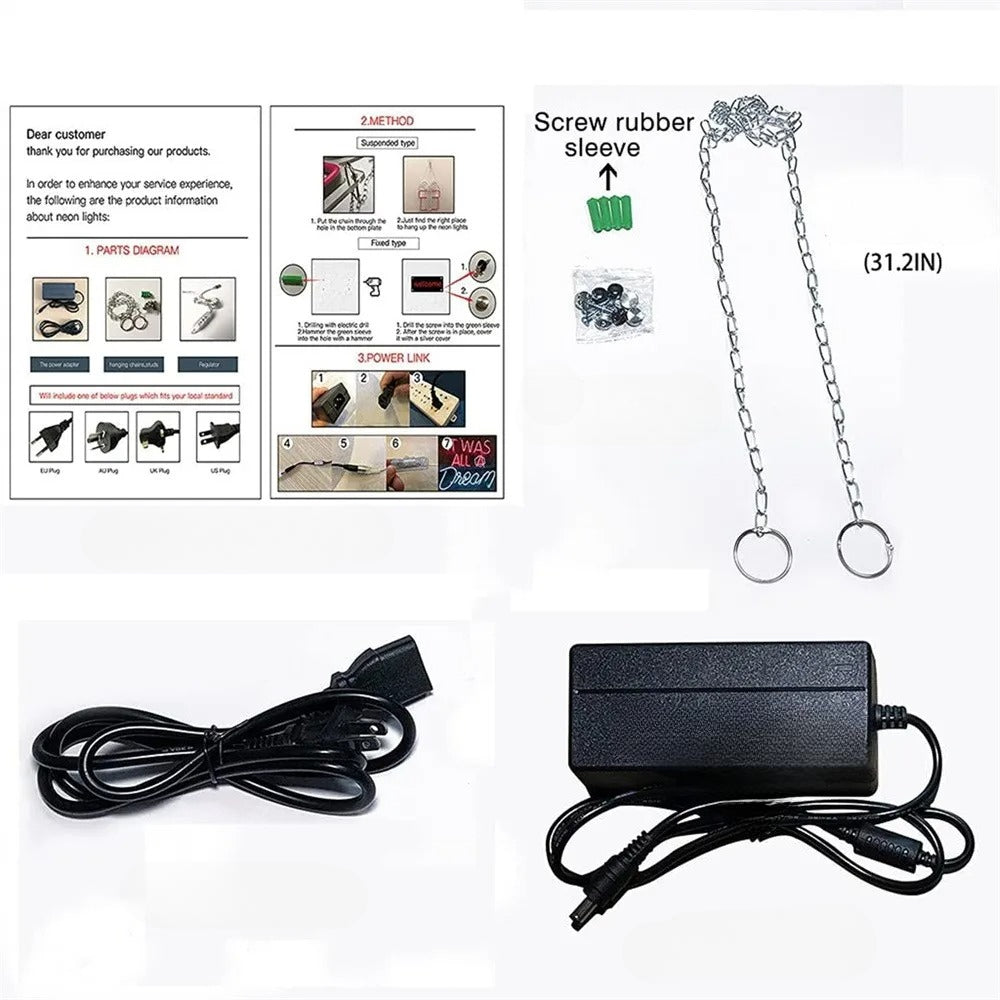• Material: This sign is crafted from a bright LED neon light strip affixed to a sturdy 5mm thick transparent acrylic base plate, ensuring both elegance and resilience.